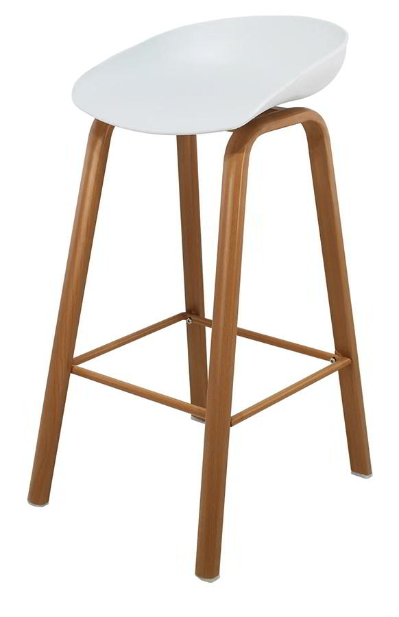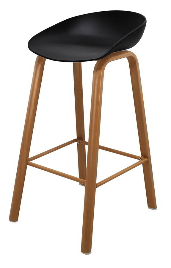Banco con Asiento de Polipropileno y Base con Descansapies Fabricada en Metal con Acabado en Imitación Madera Natural.
