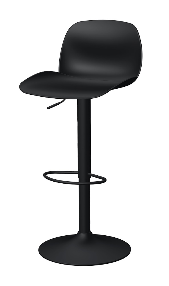 Banco Giratorio 360° con Asiento Fabricado en Polipropileno y Reforzado con Fibra de Vidrio, Base y Reposapies de Metal con Pistón Hidráulico para Altura Ajustable.