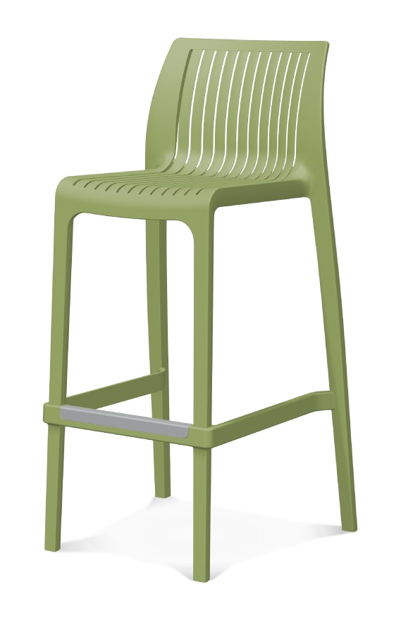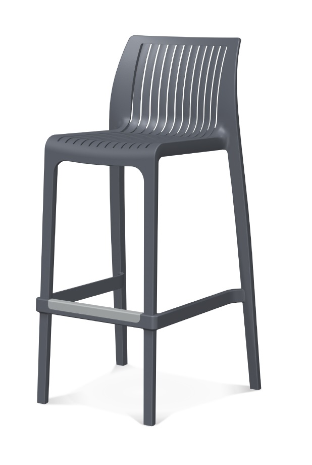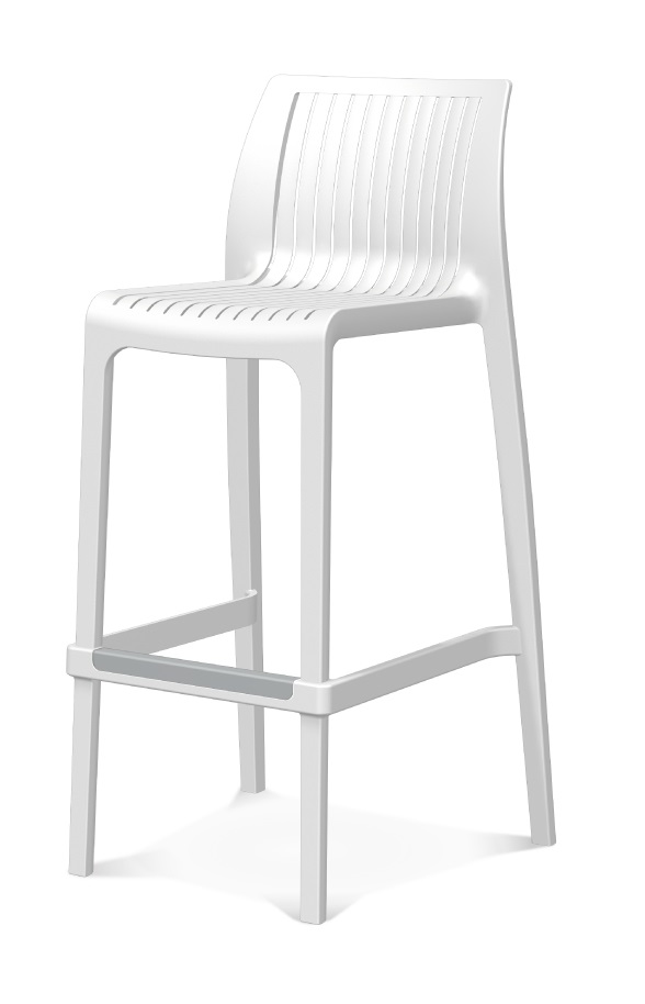 Banco de Polipropileno con Altura para Bar y Perforación en Líneas Rectas, Fabricado en Una Sola Pieza con Diseño Ergonómico para Uso en Interiores e Intemperie, Resistente a Rayos Ultravioleta (UV) y Resistente al Ambiente Salino.