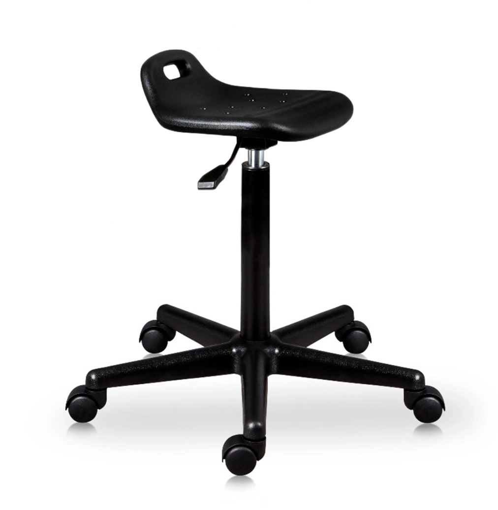 Banco Ergonómico con Asiento de Poliuretano Suave, Mecanismo con Una Palanca para Activación de Pistón y Base de Nylon Pentagonal de 24″ con Rodajas en Nylon.