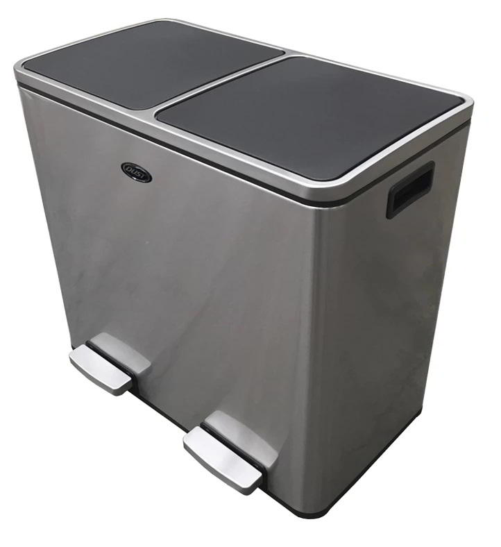 Bote Doble con Pedal, Fabricado en Acero Inoxidable con Tapa, Liners y Base de Polipropileno. Capacidad de 48 Litros (24 Litros en Cada Bote).