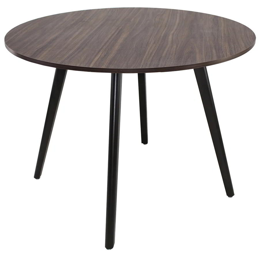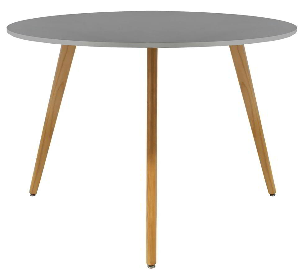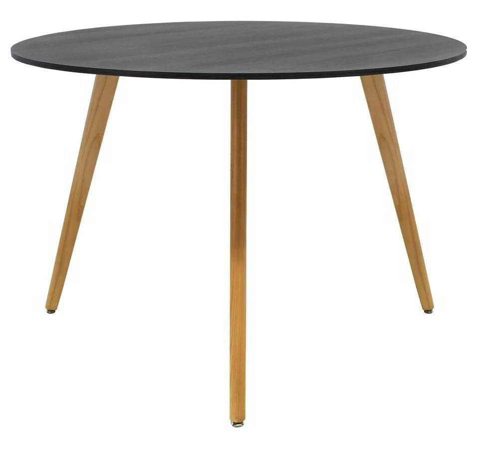 Mesa con Cubierta Circular en MDF y Patas Inclinadas de Madera en Acabado Natural o Nogal.