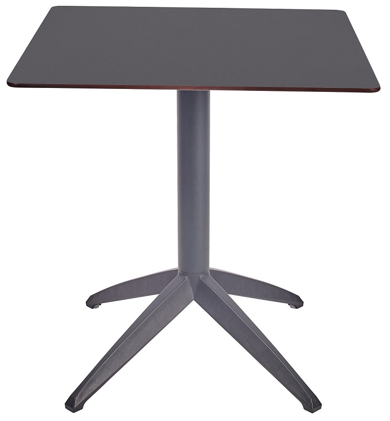 Mesa Quatro Fix con Cubierta Cuadrada en Tablero Compacto, Patas de Polipropileno con Fibra de Vidrio e Inyección por Gas y Tubo de Aluminio Lacado.