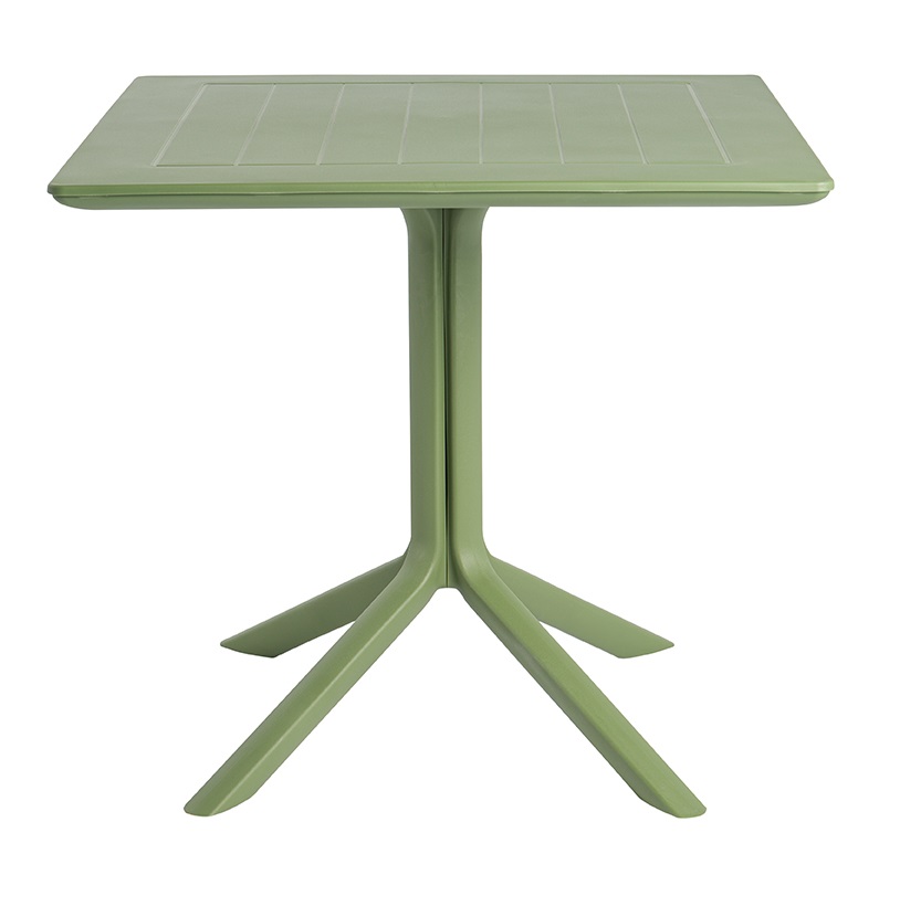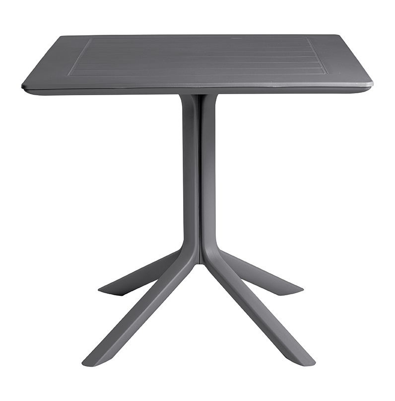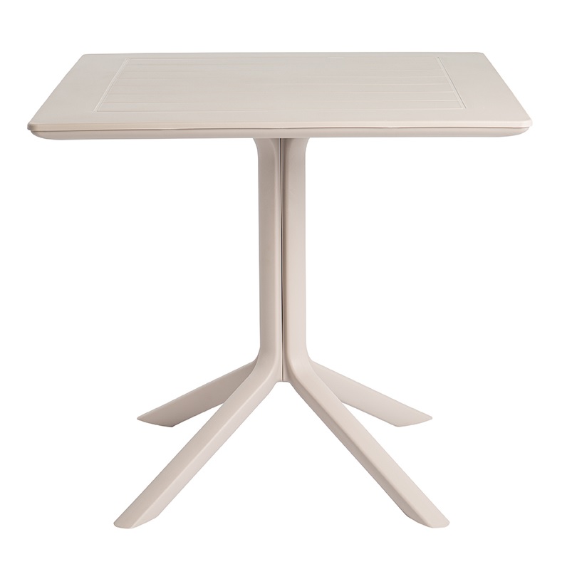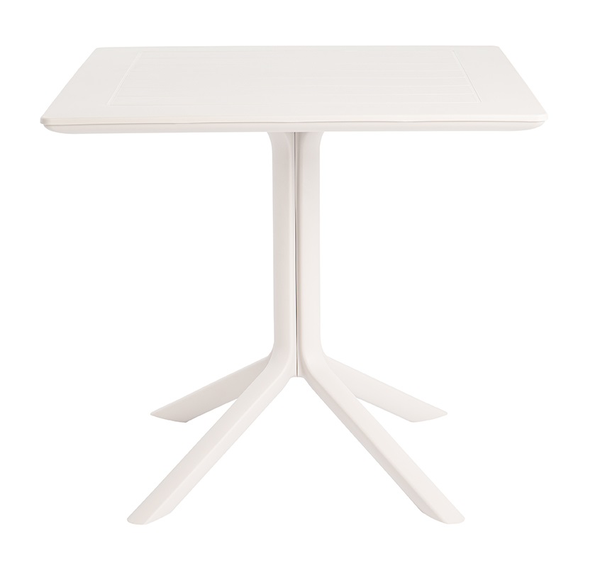 Mesa Cuadrada Fabricada en Termoplástico Polimerizado de Polipropileno Resistente a Rayos Ultravioleta (UV) y Resistente al Ambiente Salino para Uso en Interiores y Exteriores.