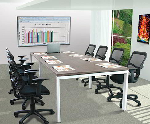 Mesa de Juntas Ejecutiva con Cubierta de Melamina, Estructura Metálica en Forma de Arko con Terminado en Pintura Electrostática y Niveladores.