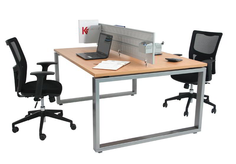 Estación de Trabajo para 2 Personas con Cubierta de Melamina, Estructura Metálica en Forma de Arko o Kuadro con Terminado en Pintura Electrostática y Niveladores. *Mampara de Aluminio Opcional.