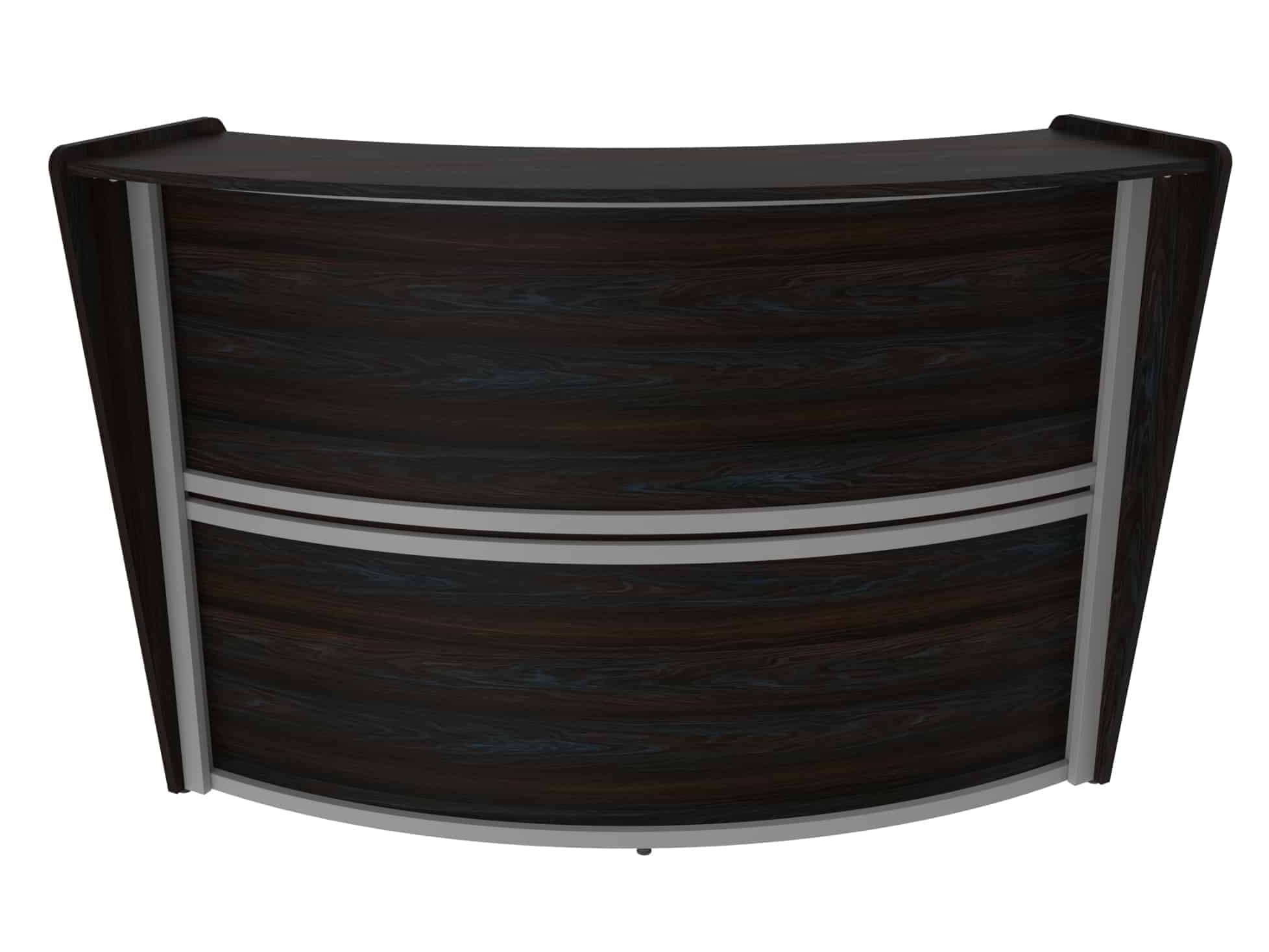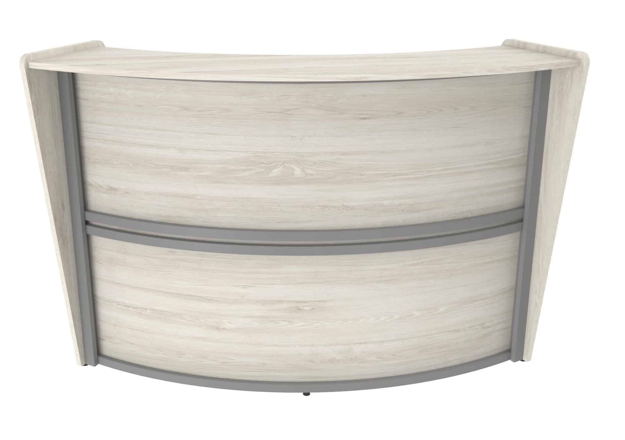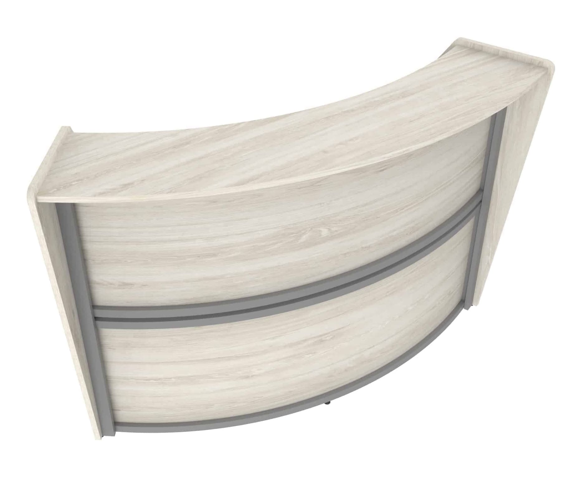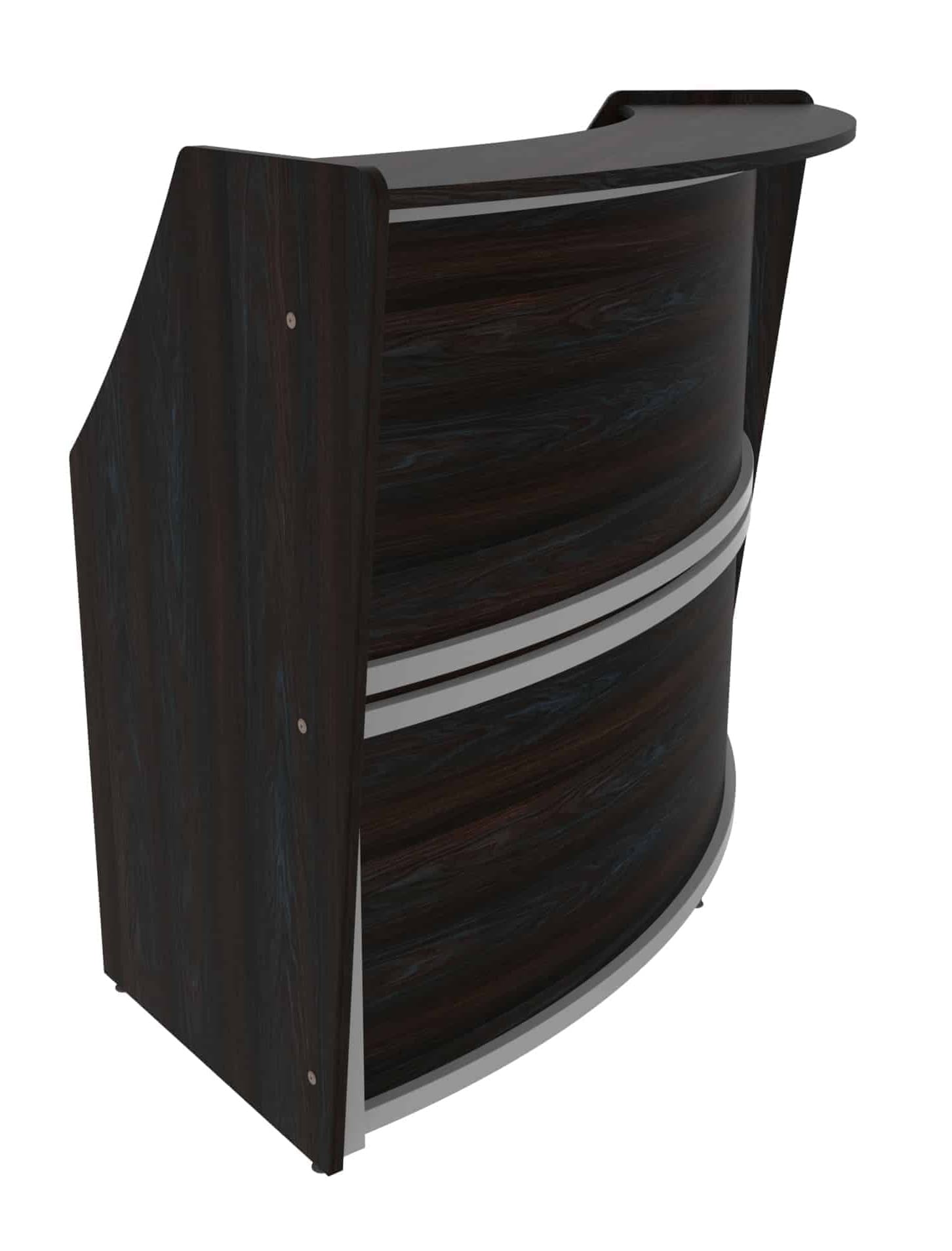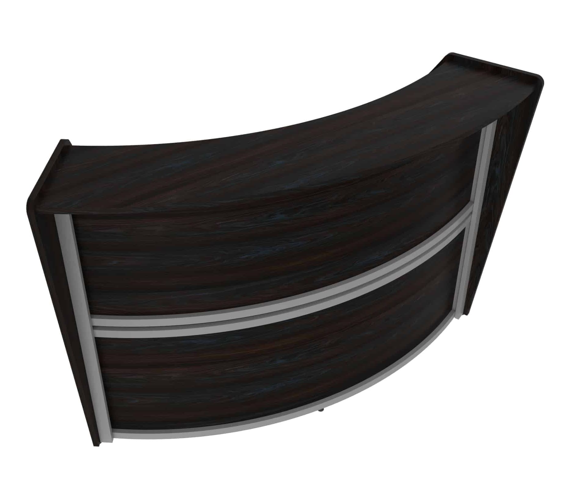 Mueble Curvo para Recepción Fabricado en Melamina de 19 mm de Espesor con Estructura de Acero Tubular y Regatones Niveladores.