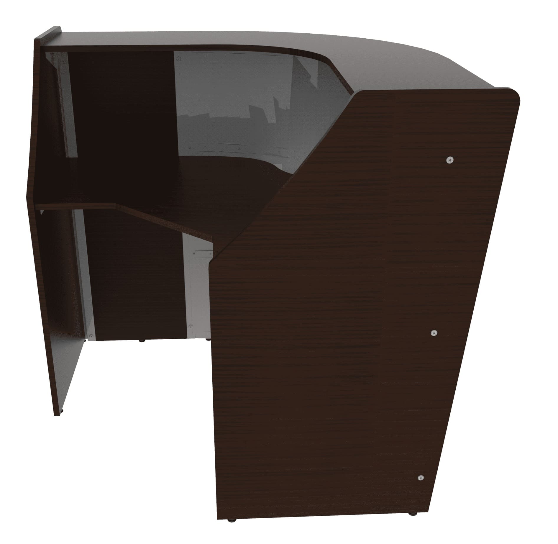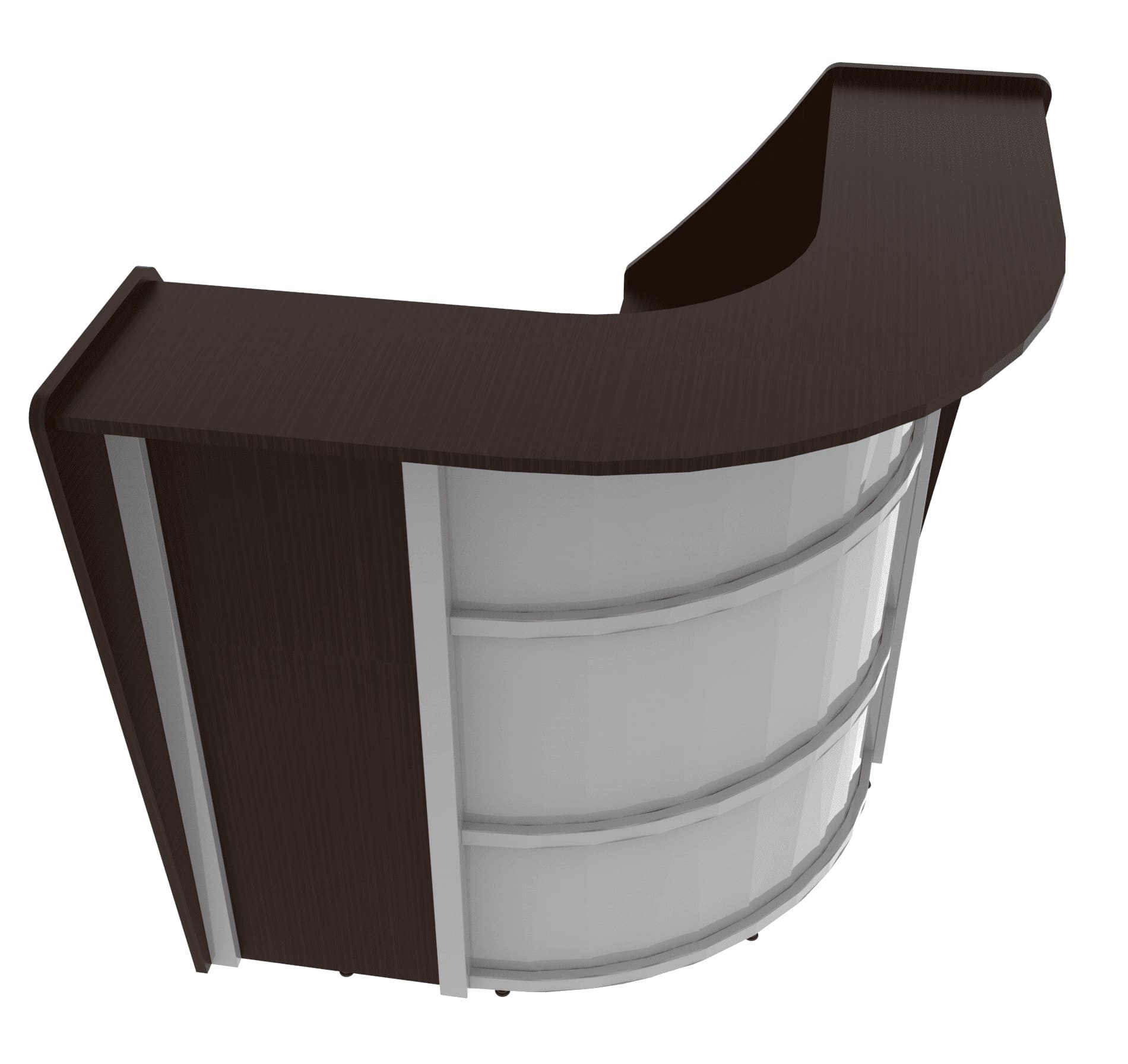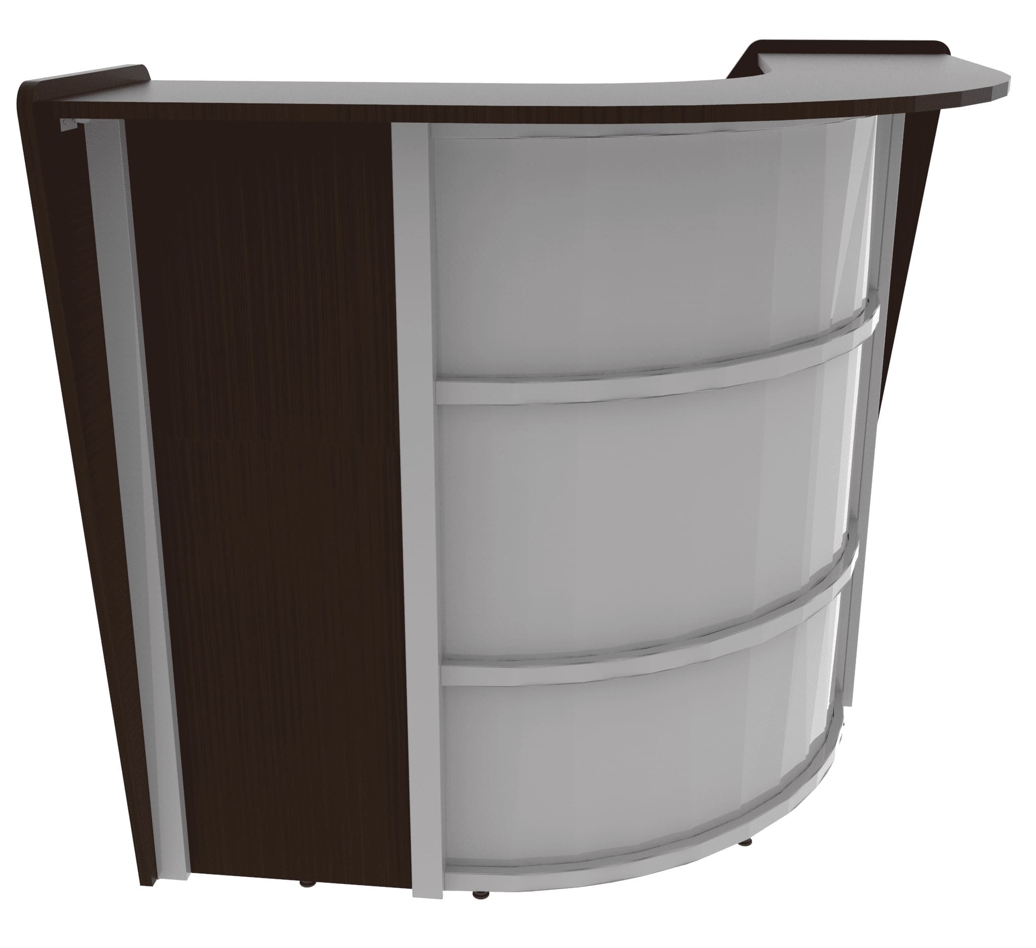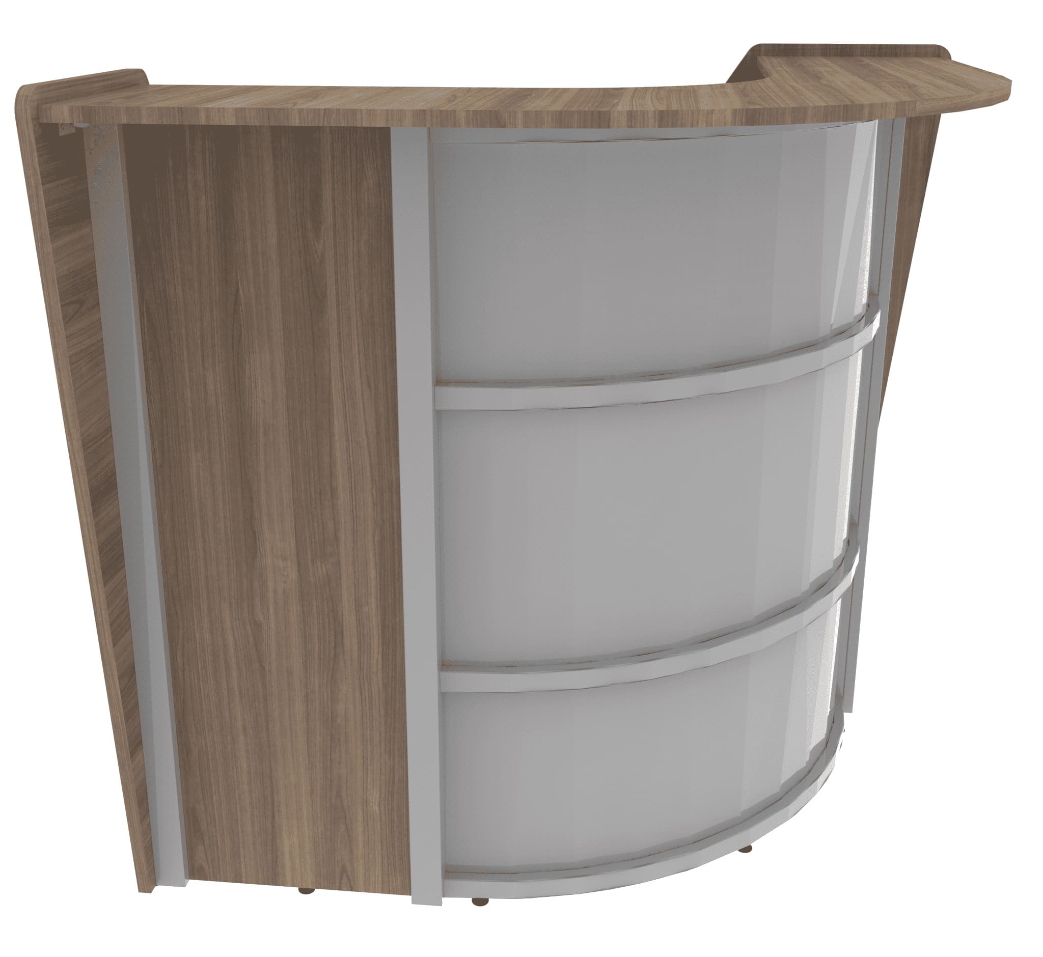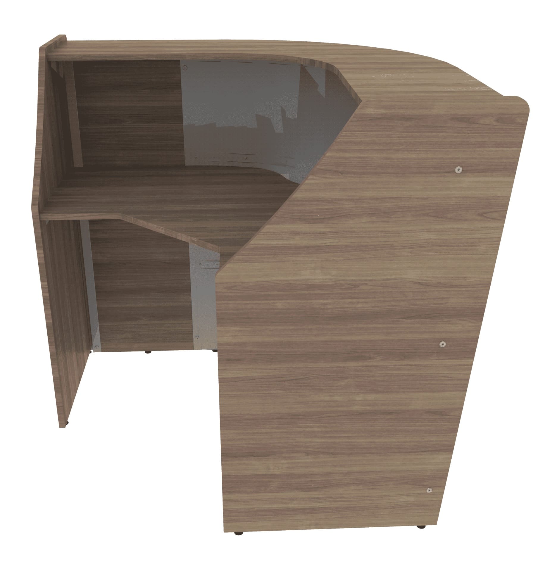 Recepción Esquinera con Cuerpo Fabricado en Melamina de 19 mm de Espesor y Frentes de Policarbonato Gris con Regatones Niveladores.