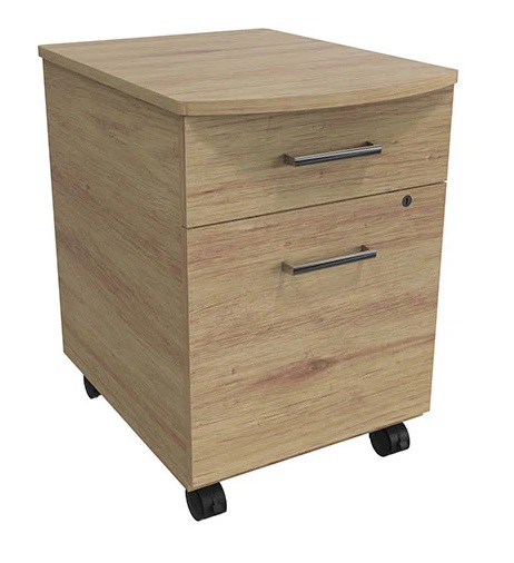 Archivero Móvil Fabricado en Melamina de 19 mm de Espesor con Cerradura y 2 Cajones, 1 Cajón Papelero y 1 Cajón para Archivo, Incluye Jaladeras Metálicas y Rodajas de Nylon de 50 mm con Freno y Sin Freno.