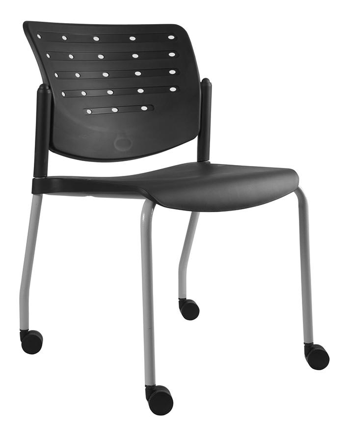 Silla para Visitante con Respaldo Multiperforado y Asiento en Polipropileno, Estructura de 4 Patas en Acero Tubular Color Gris con Rodajas.