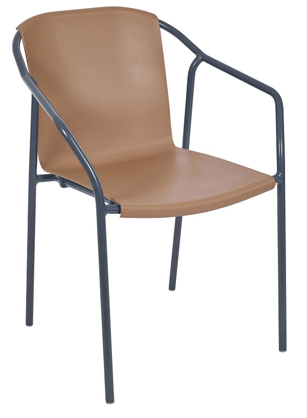 Silla Rod con Estructura de Aluminio Lacado y Asiento de Polipropileno para Uso en Interior y Exterior.