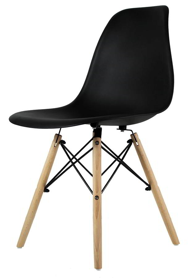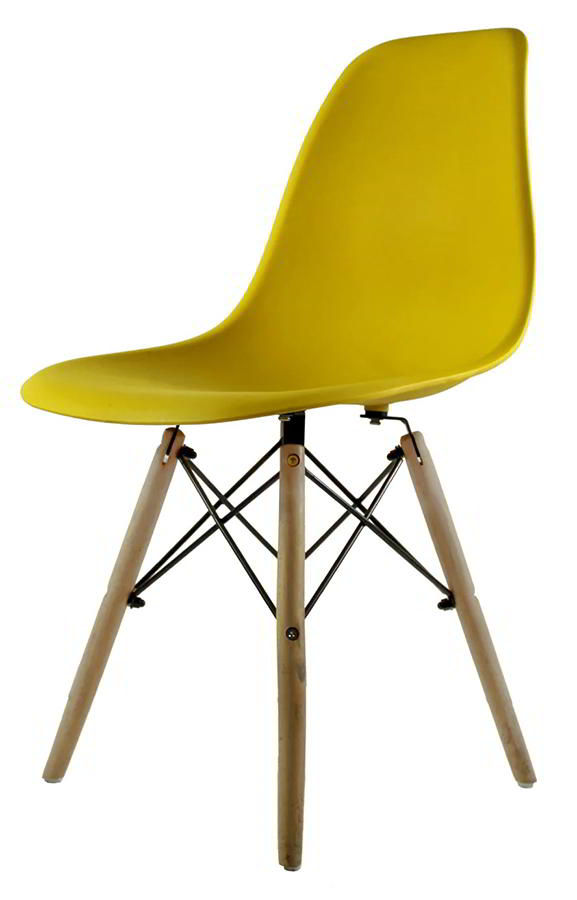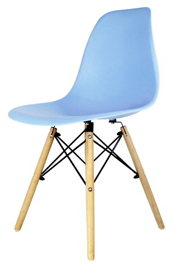 Silla con Asiento de Polipropileno y Base de Madera Color Natural Unidos por Medio de Varillas Entrecruzadas.