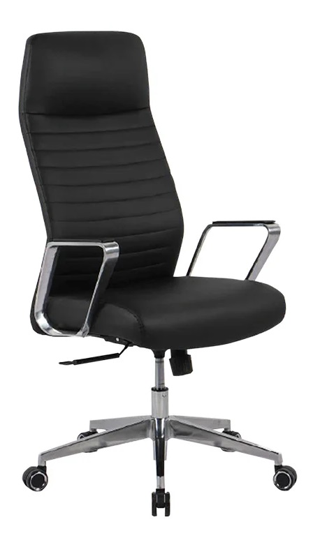 Sillón Directivo con Respaldo Alto y Asiento Tapizados en Piel, Cabecera Fija al Respaldo y Tapizada en Piel, Brazos de Aluminio, Mecanismo con Palanca para Ajuste de Altura y Palanca para Reclinamiento con 3 Posiciones de Bloqueo, Perilla para Ajuste de Tensión y Base de Aluminio Pentagonal con Rodajas.