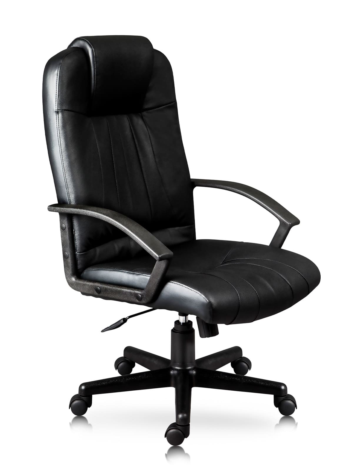 Sillón Directivo con Respaldo Alto y Asiento Tapizados en Vinipiel, Acojinamiento con Espuma Estándar, Brazos Fijos de Polipropileno con Diseño Ergonómico, Mecanismo Ejecutivo con Palanca para Activar Pistón y Bloqueo de Reclinamiento, Perilla Tensora de Reclinamiento y Base de Nylon de 26” con Rodajas.