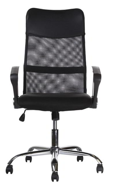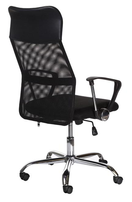 Silla Ejecutiva con Respaldo en Malla Mesh, Cabecera Tapizada en Vinil y Asiento Tapizado en Tela, Brazos Fijos de Polipropileno, Mecanismo con Ajuste de Reclinación de Asiento y Respaldo con Bloqueo y Base de Acero en Acabado Cromo con Rodajas.