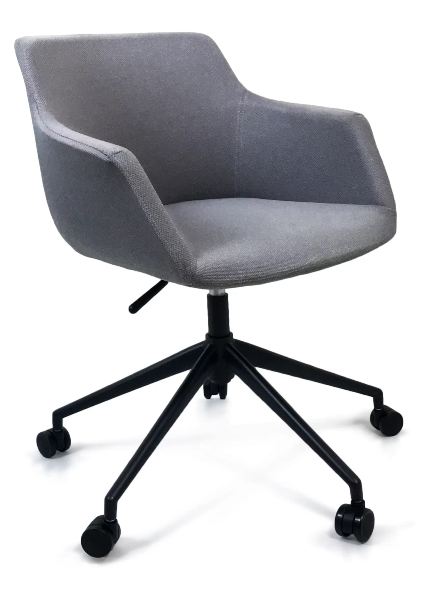 Sillón Giratorio Acojinado con Espuma de Poliuretano Inyectado y Tapizado en Tela, Mecanismo con Reclinamiento Libre y Palanca para Ajuste de Altura, Base de Acero Pintado Color Negro con Rodajas.