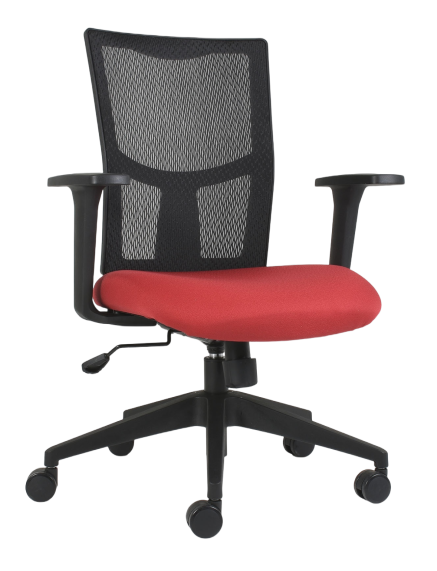 Silla Operativa con Respaldo Medio Tapizado en Malla, Asiento de Poliuretano Inyectado Tapizado en Tela, Brazos de Polipropileno, Mecanismo Syncro Reclinable y Base de Nylon con Rodajas.