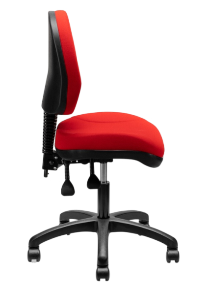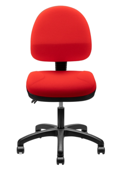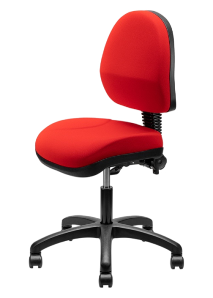 Silla Giratoria con Respaldo Medio y Asiento Tapizados y Acojinados con Espuma de Poliuretano, Pistón Neumático para Ajuste de Altura, Palancas para Reclinación de Respaldo y Ajuste en Altura de Asiento y Base de 5 Brazos de Poliamida Reforzada con Rodajas o Regatones.