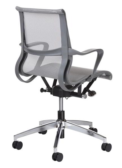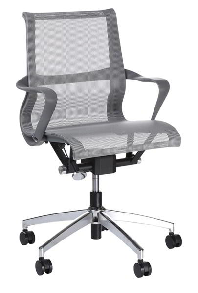 Silla Operativa con Respaldo y Asiento Corrido en Malla Mesh, Brazos Fijos de Polipropileno, Mecanismo de Rodilla con Ajuste de Reclinación y Bloqueo en Asiento y Respaldo y Base de Acero en Acabado Cromo con Rodajas.