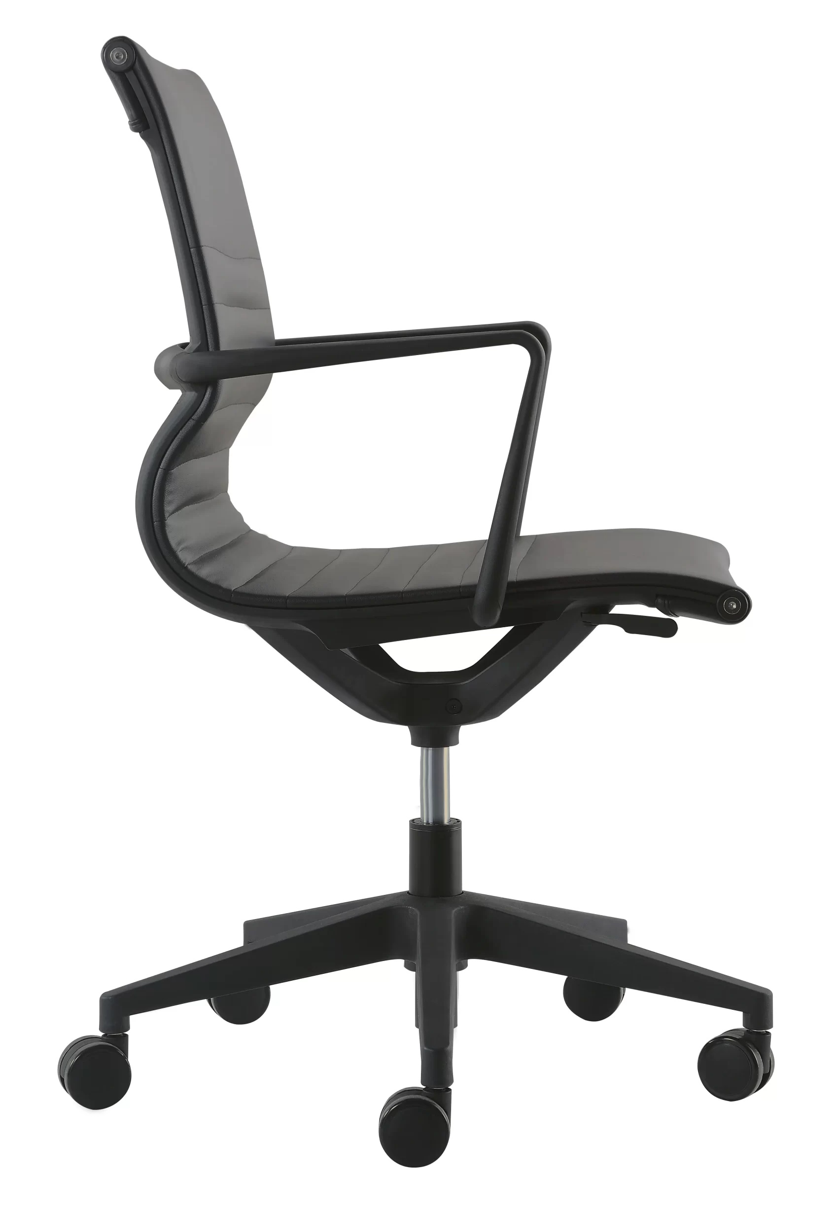 Silla Operativa Tapizada en Vinil con Estructura de Polipropileno en Respaldo y Asiento, Mecanismo con Palanca para Ajuste de Altura y Palanca para Bloqueo de Reclinamiento, Brazos de Polipropileno en Forma de Escuadra Fijos al Respaldo y al Asiento y Base de Nylon de 26” con Rodajas.
