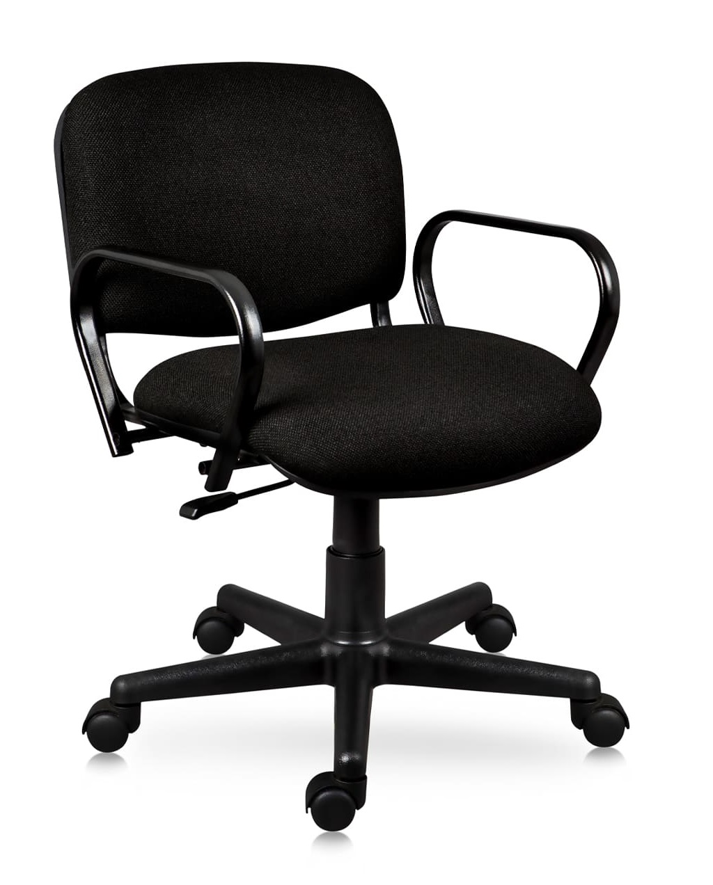 Silla Secretarial con Brazos Fijos de Polipropileno, Respaldo y Asiento Acojinados con Espuma Estándar y Tapizados en Tela, Mecanismo con Una Palanca para Ajuste de Altura y Base de Nylon de 24″ con Rodajas.