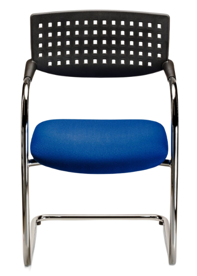 Silla de Visita Fija con Respaldo Medio de Polipropileno Flexible, Asiento Tapizado y Acojinado con Espuma de Poliuretano, Coderas de Polipropileno y Estructura de Acero Tubular Cromado (Trineo) con Regatones.